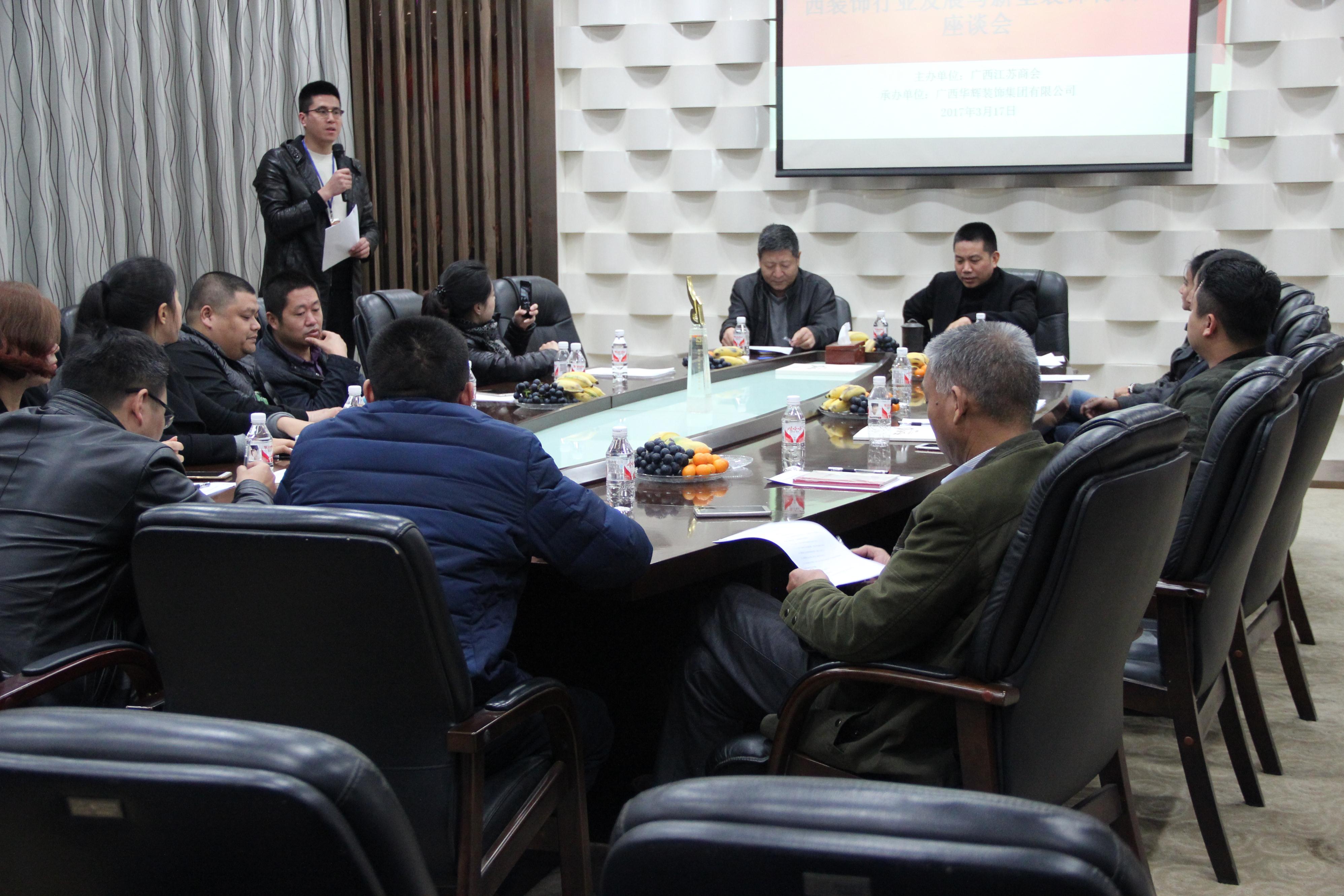 2017年3月17日下午,廣西江蘇商會主辦的“廣西裝飾行業(yè)發(fā)展與新型裝飾材料應用座談會”在廣西華輝裝飾集團辦公大樓隆重舉行。座談會由廣西江蘇商會秘書長朱建平主持,廣西江蘇商會值班會長楊景忠及二十多家商會成員等共三十多人參加了本次座談會。大家在會上就裝修裝飾行業(yè)的相關問題暢所欲言,介紹了各自企業(yè)目前所掌握的資源和商機,并就目前商會的工作和管理提出中肯的建議,希望商會能夠發(fā)揮更大作用,成為蘇商在廣西的家。