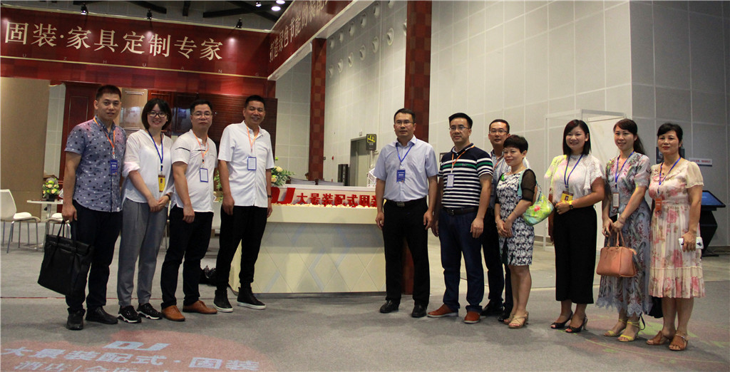 上圖為廣西建筑裝飾協(xié)會會長龐耀國等一行前往華輝展廳參觀指導(dǎo)