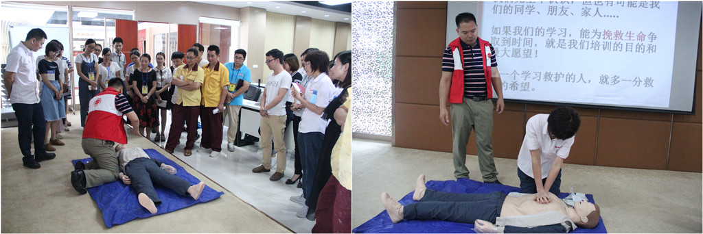 應(yīng)急救護培訓(xùn)現(xiàn)場:來自紅十字會的培訓(xùn)老師用通俗易懂的語言為大家講解了心肺復(fù)蘇、人工呼吸等常見應(yīng)急、意外傷害的救護原理及技術(shù)手段,并結(jié)合實踐操作,讓大家掌握基本急救、自救、呼救的技能知識和關(guān)鍵性的救助實踐操作,提高面對意外事故的應(yīng)急能力。