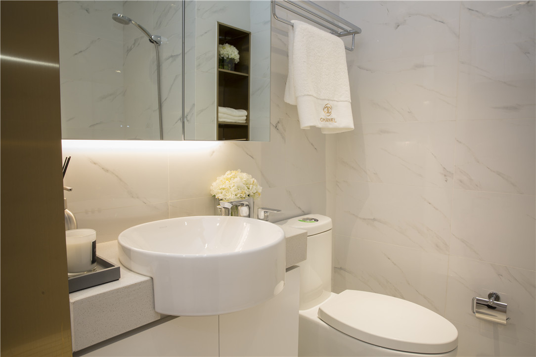 ▲衛(wèi)生間干濕分離設(shè)計,將洗漱、洗浴功能有效分區(qū),合理的收納讓空間更加簡潔有序。