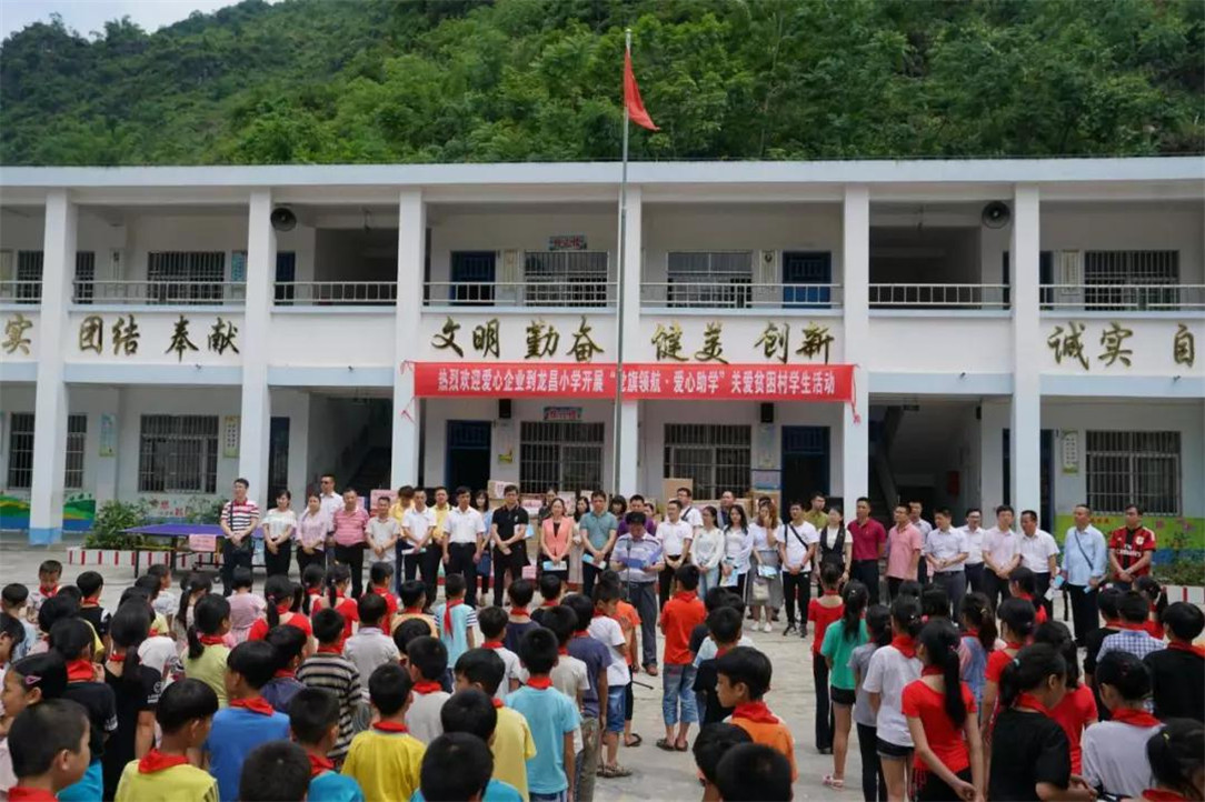 ▲在龍昌小學(xué)開(kāi)展“黨旗領(lǐng)航·愛(ài)心助學(xué)”關(guān)愛(ài)貧困村學(xué)生活動(dòng)