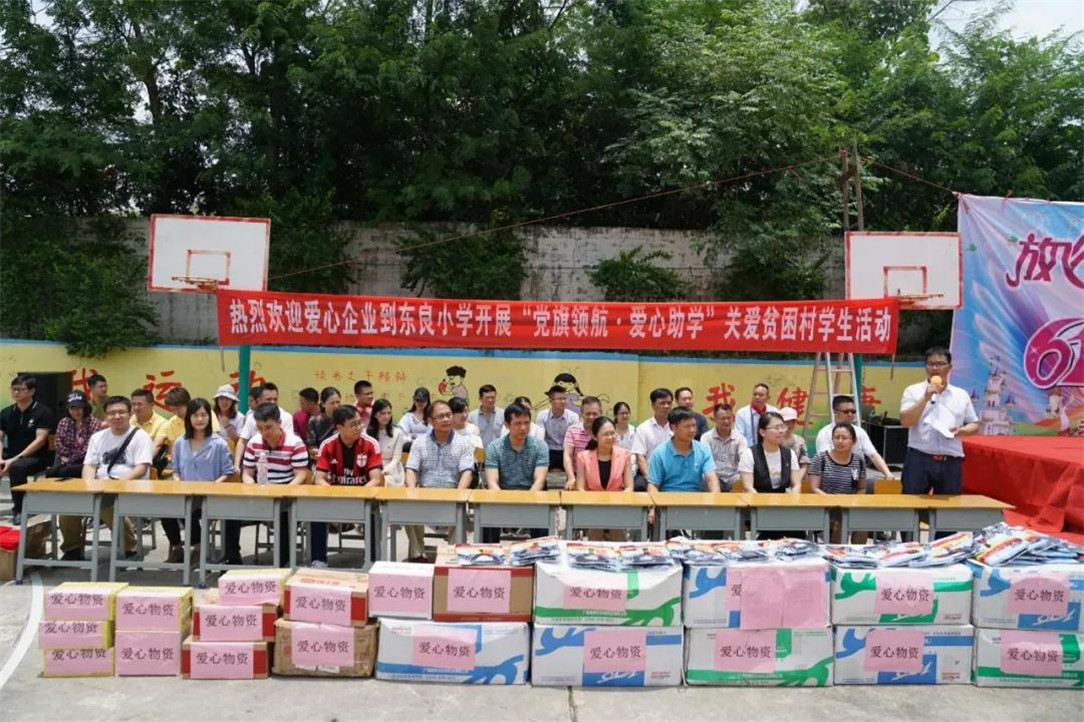 ▲在東良小學(xué)開(kāi)展“黨旗領(lǐng)航·愛(ài)心助學(xué)”關(guān)愛(ài)貧困村學(xué)生活動(dòng)