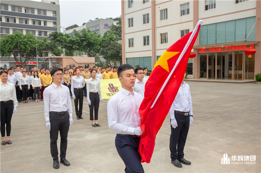 2019年4月13日清晨,嘹亮的國歌聲在華輝集團奏響,莊嚴神圣的升旗儀式在集團操場隆重舉行。