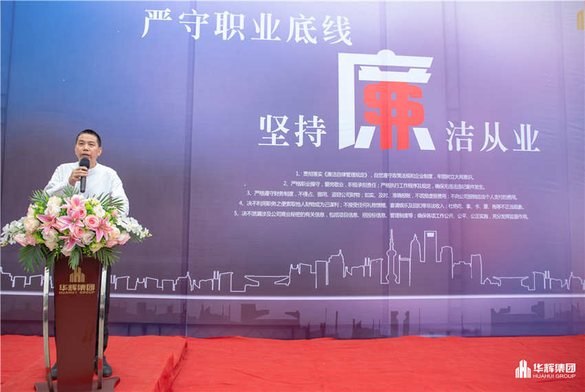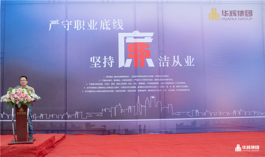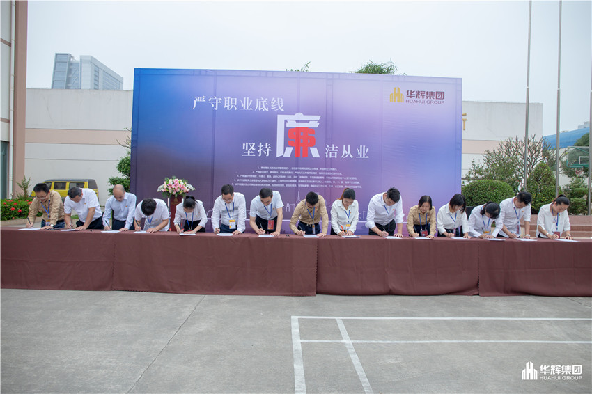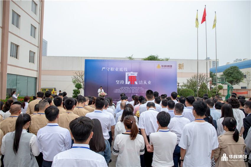 2019年4月13日,華輝集團(tuán)開展“嚴(yán)守職業(yè)底線,堅(jiān)持廉潔從業(yè)”的宣誓儀式,集團(tuán)員工及材料、勞務(wù)合作商參加了活動。
