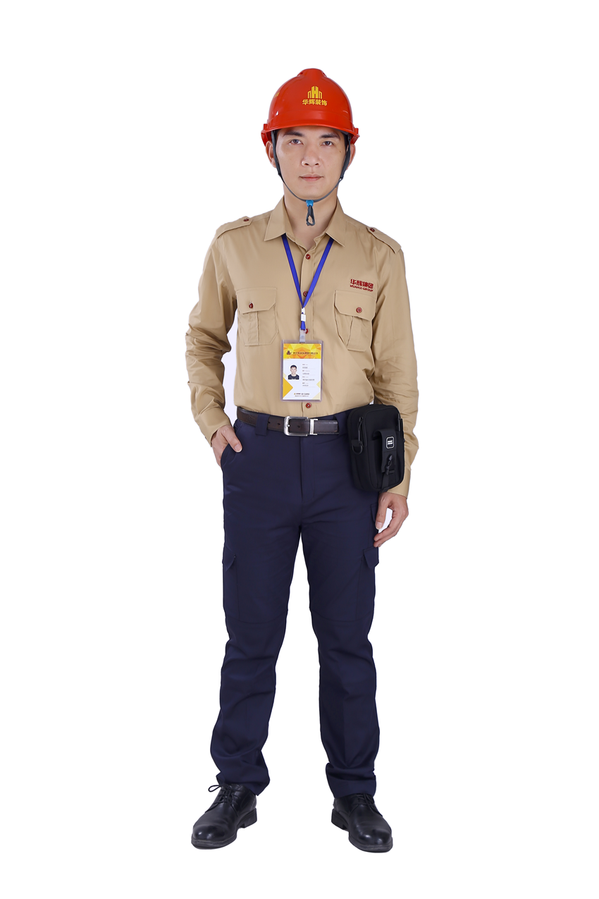 ▲華輝工程管理人員著裝規(guī)范:統(tǒng)一配備工程腰包,內(nèi)有“工程專業(yè)三件寶”