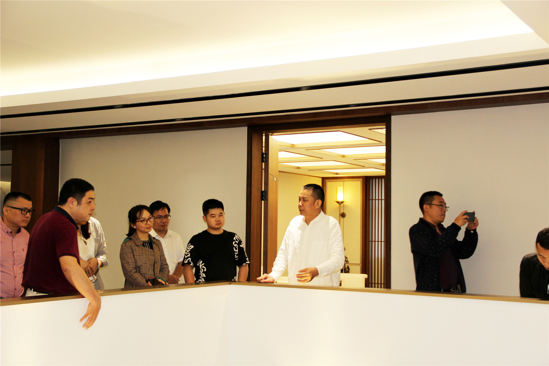 ▲與會(huì)人員參觀華輝總部辦公樓