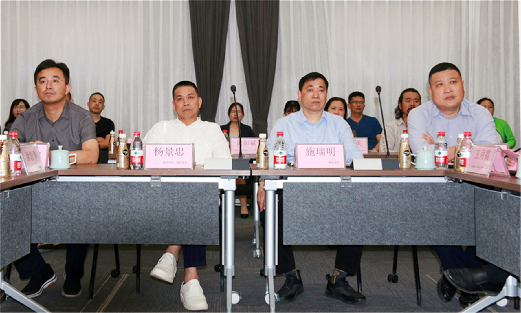 ▲從左至右:商會(huì)執(zhí)行會(huì)長(zhǎng)楊勤偉、楊景忠,商會(huì)會(huì)長(zhǎng)施瑞明、商會(huì)黨支部書(shū)記張國(guó)富出席交流分享會(huì)