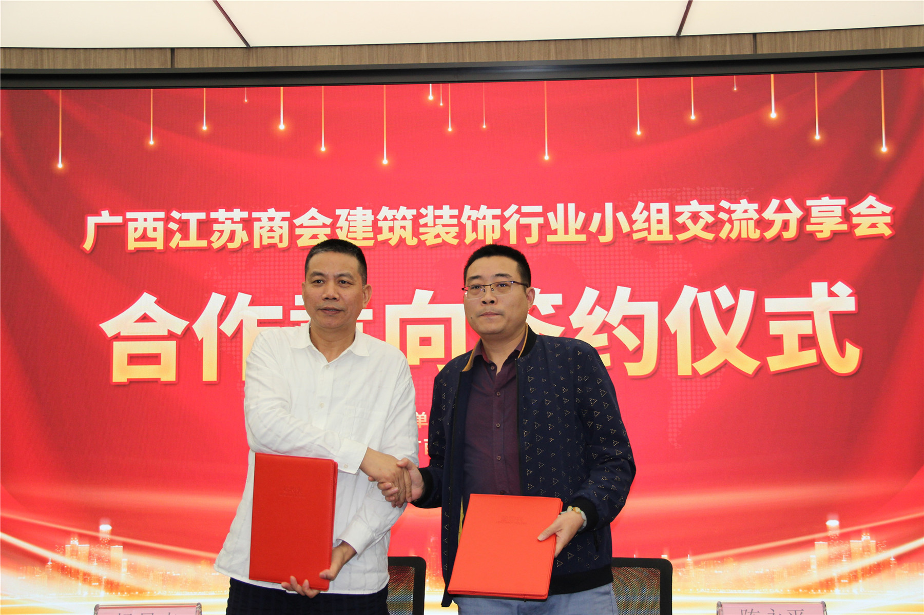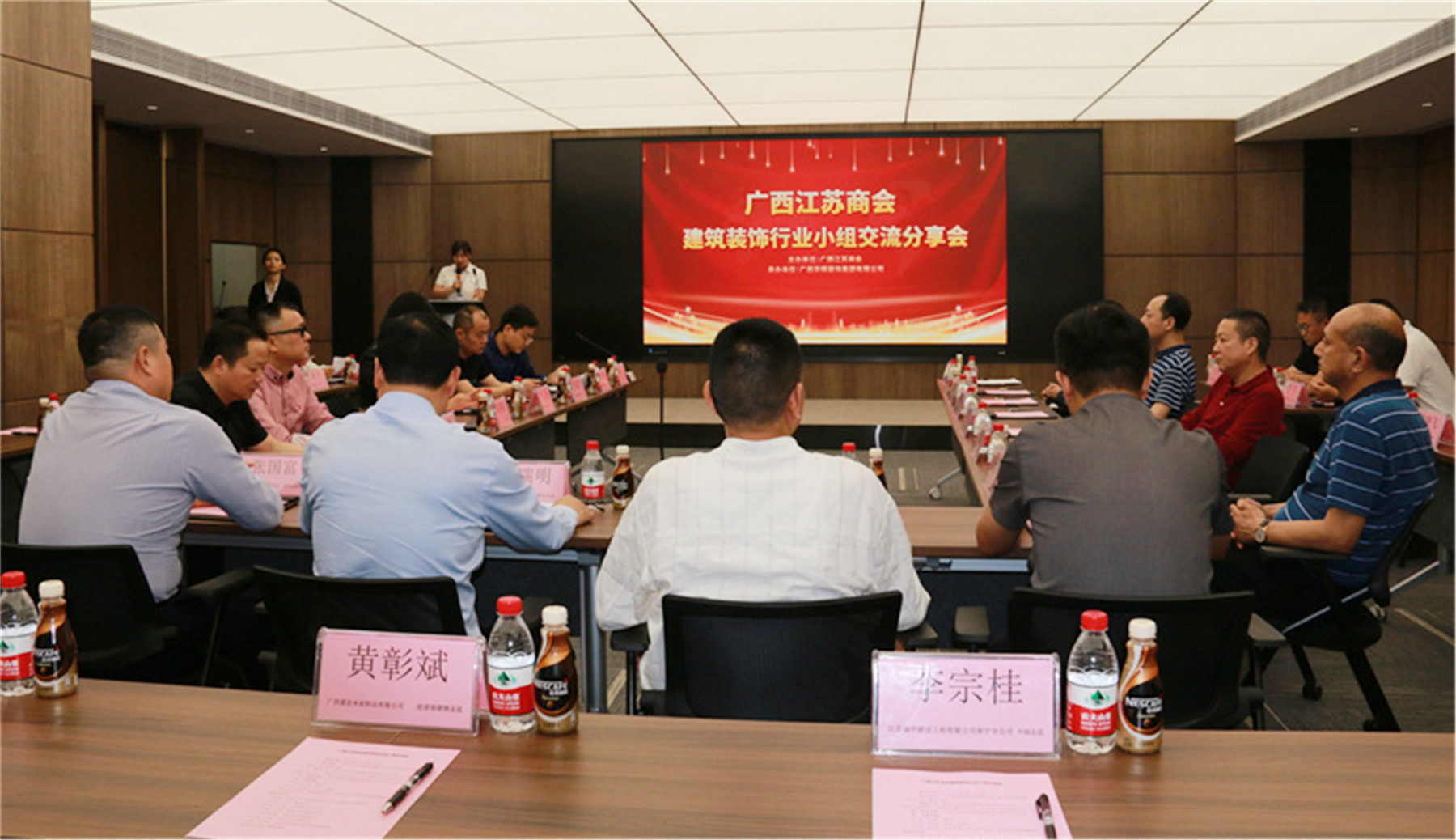 2021年4月28日,由廣西華輝裝飾集團(tuán)贊助承辦的廣西江蘇商會(huì)第四屆建筑裝飾行業(yè)小組第一次交流分享會(huì),在華輝集團(tuán)隆重舉行。商會(huì)會(huì)長(zhǎng)施瑞明、商會(huì)黨支部書(shū)記張國(guó)富,商會(huì)執(zhí)行會(huì)長(zhǎng)、輪值會(huì)長(zhǎng)楊景忠,商會(huì)執(zhí)行會(huì)長(zhǎng)楊勤偉,商會(huì)常務(wù)副會(huì)長(zhǎng)、人民調(diào)解委員會(huì)主任王月霞,商會(huì)常務(wù)副會(huì)長(zhǎng)徐敦華、趙滿根、杜紅方、葉東,商會(huì)副會(huì)長(zhǎng)、輪值會(huì)長(zhǎng)趙玉清,副會(huì)長(zhǎng)王靜、黃建平、吳軍、管沙洲、羅國(guó)慶、盧華,副監(jiān)事長(zhǎng)王偉及商會(huì)理事、會(huì)員單位代表和駐桂蘇商企業(yè)相關(guān)負(fù)責(zé)人等50多人參加交流分享會(huì)。