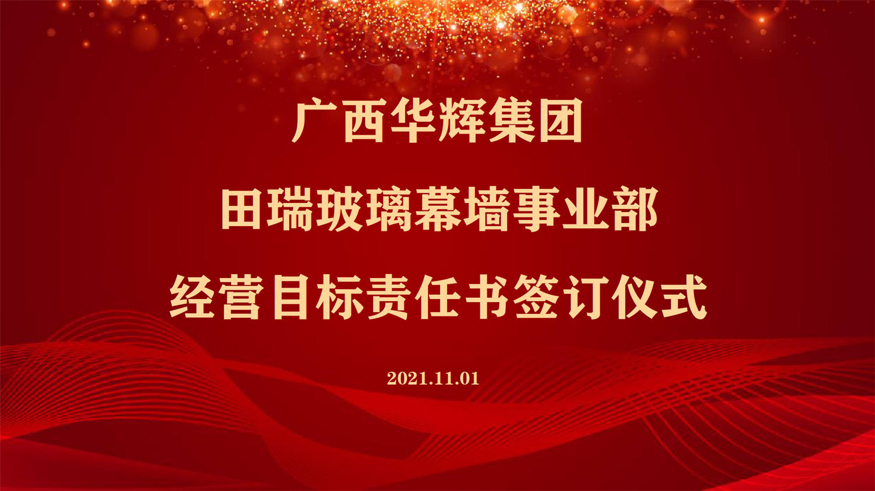 2021年11月1日,廣西華輝裝飾集團有限公司與南寧田瑞玻璃有限責任公司,正式成立“華輝集團田瑞玻璃幕墻事業(yè)部”,雙方簽署經營目標責任書,開啟全新領域的拓展。