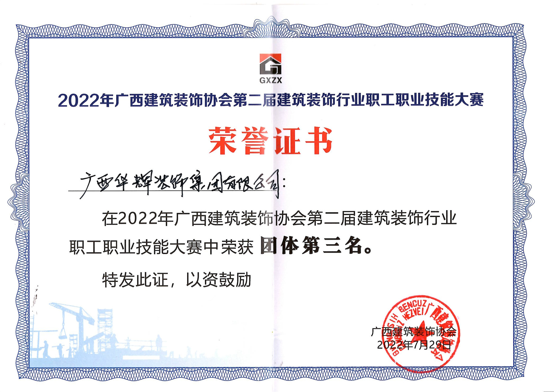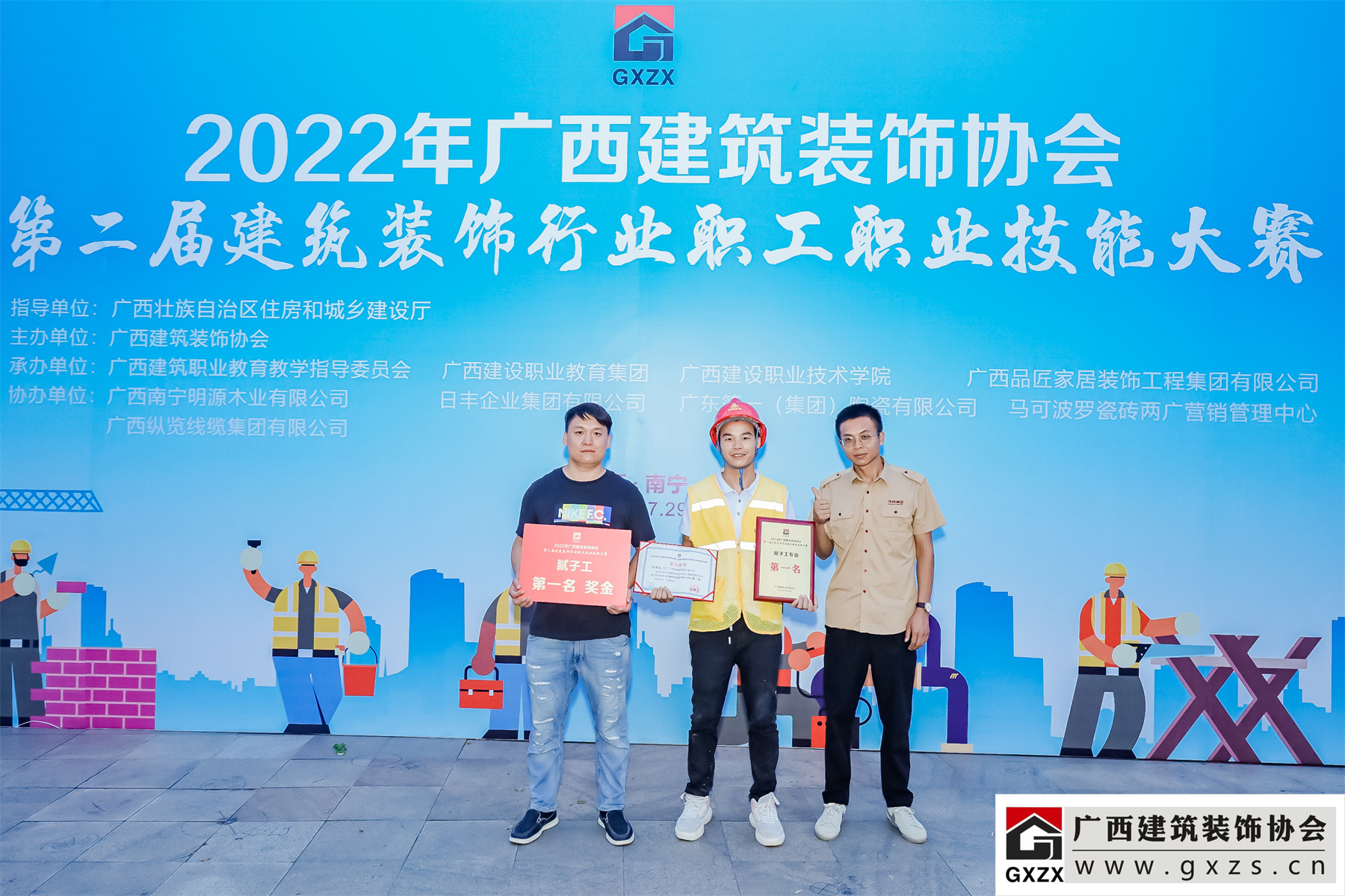 2022年7月29日,2022年廣西建筑裝飾協(xié)會“第二屆建筑裝飾行業(yè)職工職業(yè)技能大賽”,在廣西建設(shè)職業(yè)技術(shù)學(xué)院落下帷幕,華輝集團榮獲膩子工第一名、團隊第三名、精細(xì)木工第三名、管道工和瓷磚貼面第五名的好成績。