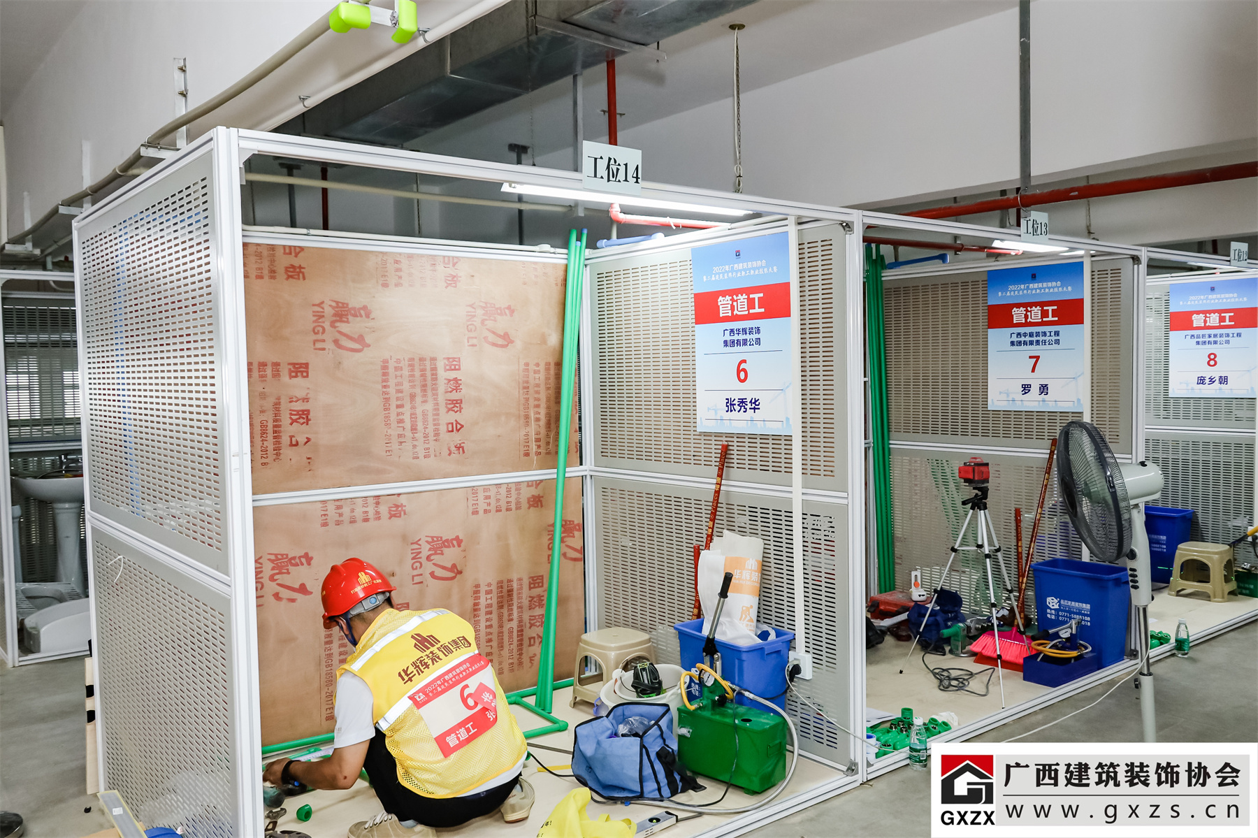 據(jù)悉,此次技能大賽由廣西住房和城鄉(xiāng)建設(shè)廳指導(dǎo),廣西建筑裝飾協(xié)會主辦;來自15家會員單位的63名選手參加膩子工、瓷磚貼面、精細(xì)木工、電工、管道工等5個項目的競賽;分為理論(筆試)與實操考核兩項內(nèi)容,理論考核占比30%,實操考核占比70%。
