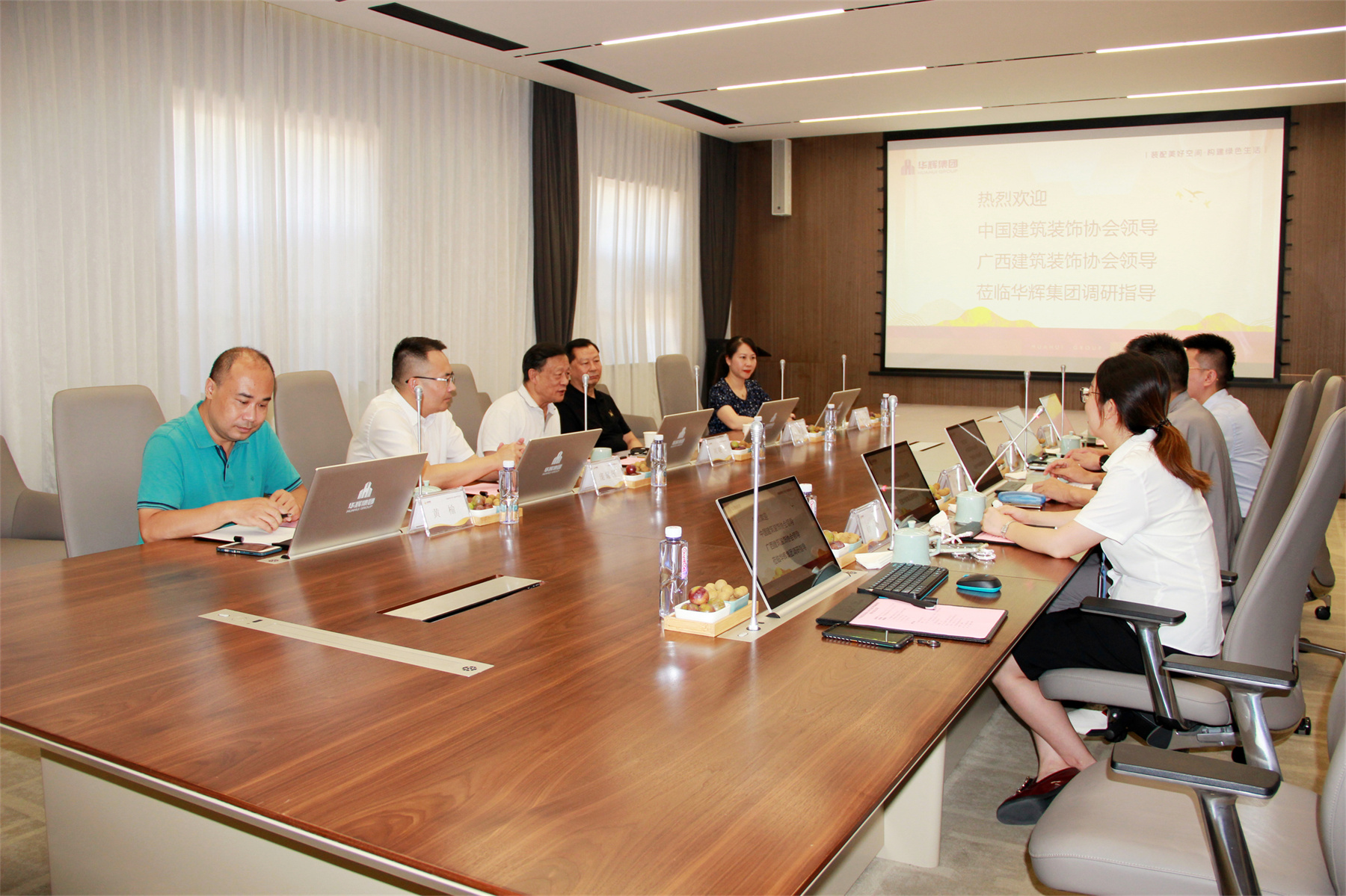 2022年8月23日,中國建筑裝飾協(xié)會會長劉曉一,第九屆理事會會長候選人、住房和城鄉(xiāng)建設(shè)部原機(jī)關(guān)服務(wù)中心主任王中奇,廣西建筑裝飾協(xié)會會長龐耀國,蒞臨華輝集團(tuán)調(diào)研指導(dǎo)。集團(tuán)董事長楊景忠、副總裁楊彬熱情接待并陪同調(diào)研。