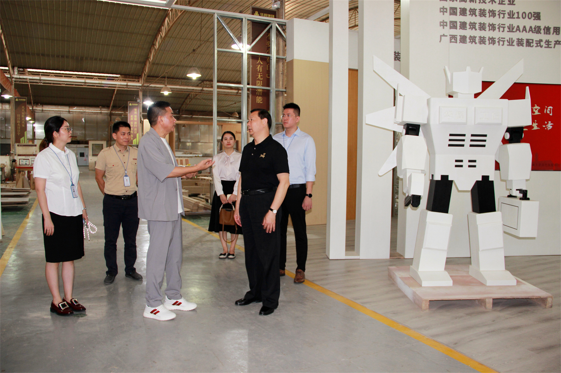在參觀黨建活動陣地時(shí),王中奇會長對于華輝黨建和經(jīng)營互促互贏的成績給予了高度肯定。在華輝裝配式裝修生產(chǎn)車間,王中奇會長認(rèn)真聆聽了技術(shù)人員介紹生產(chǎn)流程、工藝,鼓勵華輝繼續(xù)走創(chuàng)新發(fā)展道路,擴(kuò)大裝配式裝修的發(fā)展成果,推動企業(yè)縱深發(fā)展。