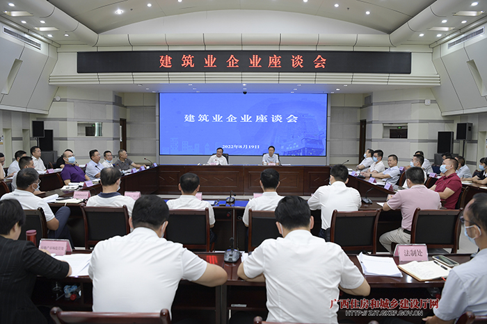 2022年8月19日,自治區(qū)住房城鄉(xiāng)建設(shè)廳召開建筑業(yè)企業(yè)座談會(huì),深入貫徹落實(shí)“疫情要防住、經(jīng)濟(jì)要穩(wěn)住、發(fā)展要安全”重要要求,全面落實(shí)國(guó)家、自治區(qū)穩(wěn)住經(jīng)濟(jì)決策部署,以及2022年全區(qū)年中工作會(huì)議精神,了解全區(qū)建筑業(yè)企業(yè)發(fā)展情況,更好更快促進(jìn)全區(qū)建筑業(yè)高質(zhì)量發(fā)展。自治區(qū)住房城鄉(xiāng)建設(shè)廳黨組書記、廳長(zhǎng)唐標(biāo)文出席會(huì)議并講話,自治區(qū)住房城鄉(xiāng)建設(shè)廳黨組成員、副廳長(zhǎng)潘國(guó)雄主持會(huì)議。