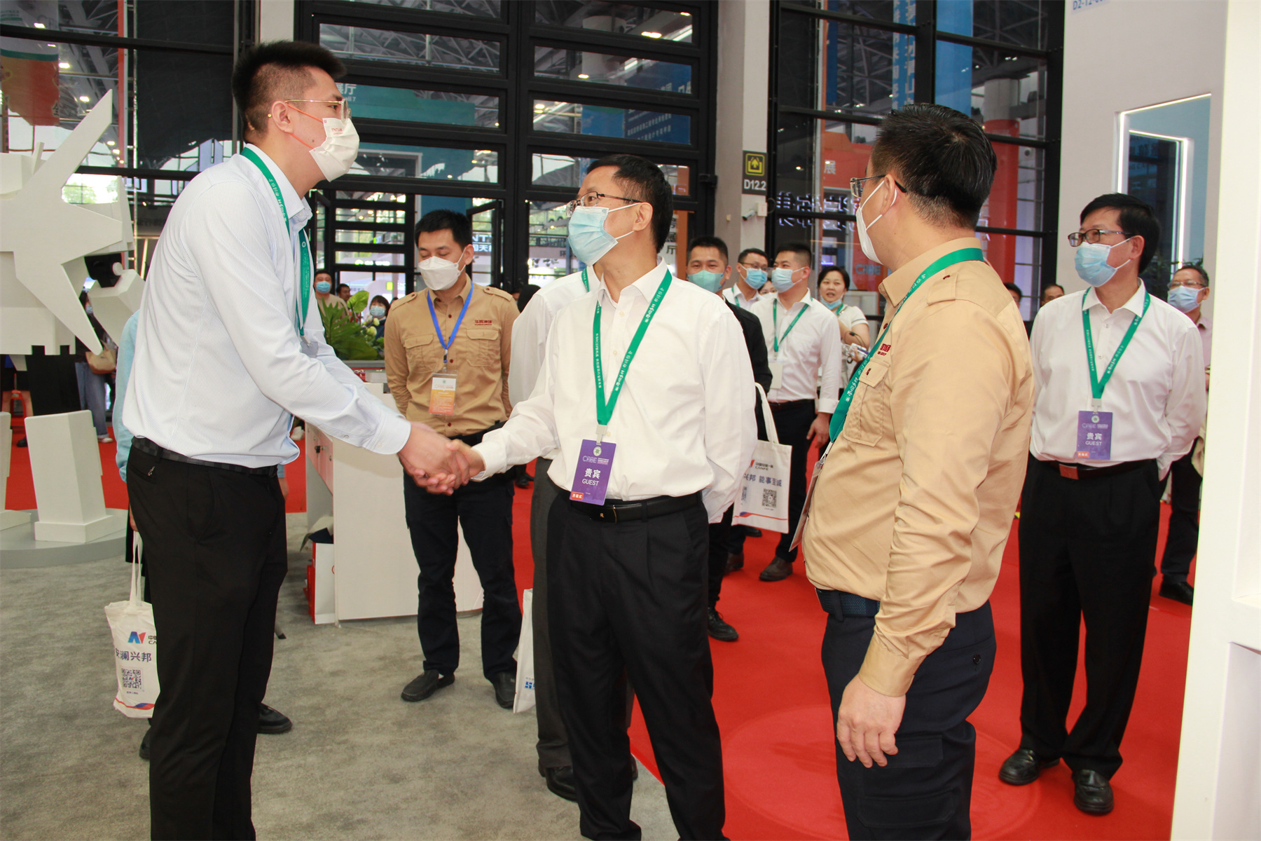 2022年11月26日,2022中國(guó)—東盟建筑業(yè)暨高品質(zhì)人居環(huán)境博覽會(huì)第二天,自治區(qū)住房城鄉(xiāng)建設(shè)廳副廳長(zhǎng)潘國(guó)雄蒞臨華輝展廳指導(dǎo)。