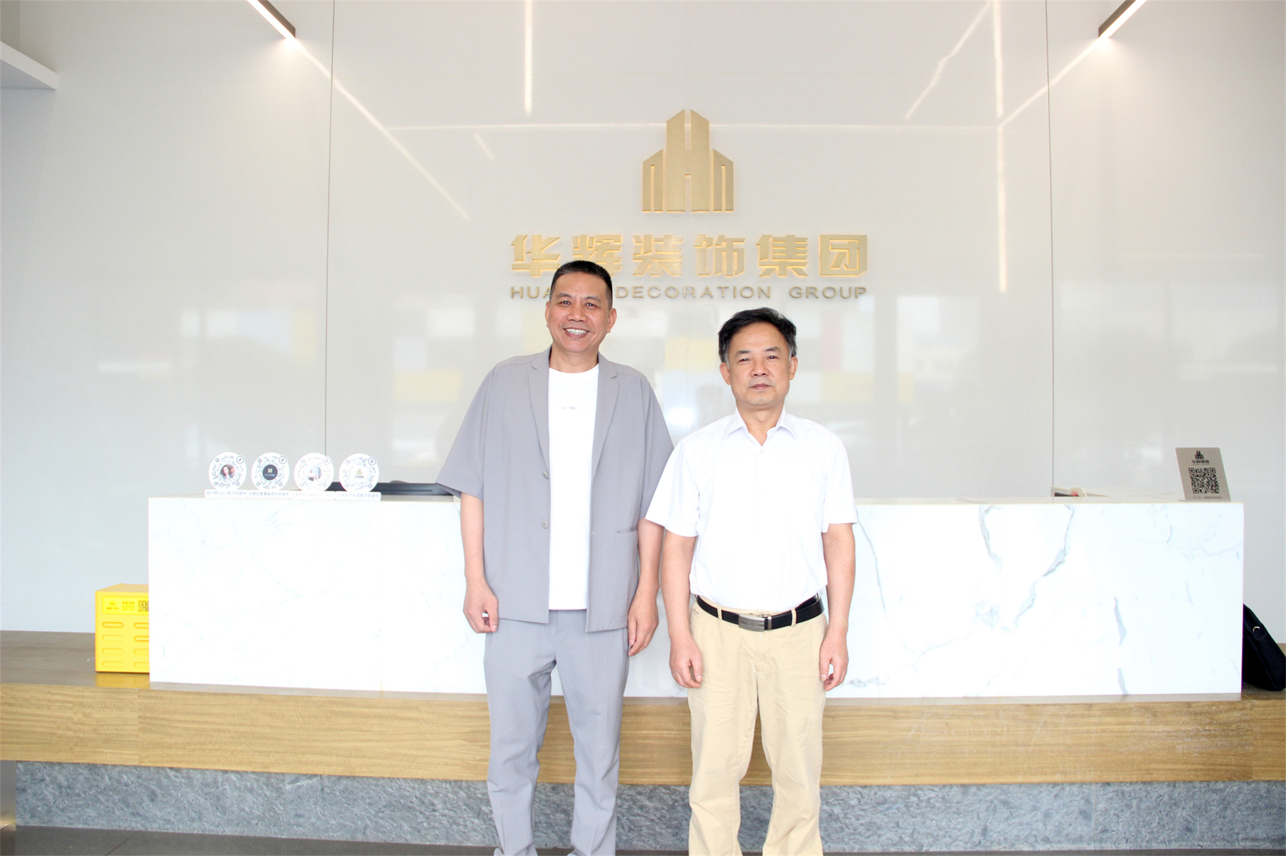 ▲自治區(qū)工商聯(lián)副主席葉俊茂參觀華輝集團,并與集團董事長楊景忠合影