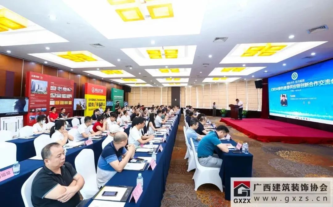 2023年6月28日,綠色建造供應鏈創(chuàng)新合作交流會在廣西南寧順利舉辦。此次交流會由中國建筑裝飾協(xié)會主辦,中國建筑裝飾協(xié)會綠色智慧建造分會和廣西建筑裝飾協(xié)會聯(lián)合承辦,中國建筑裝飾協(xié)會綠色智慧建造分會秘書長高杰、副秘書長馬清斌,廣西建筑裝飾協(xié)會會長龐耀國以及廣西頭部裝飾企業(yè)負責人等約100人參加了本次會議。華輝集團董事長楊景忠受邀出席會議并做分享。