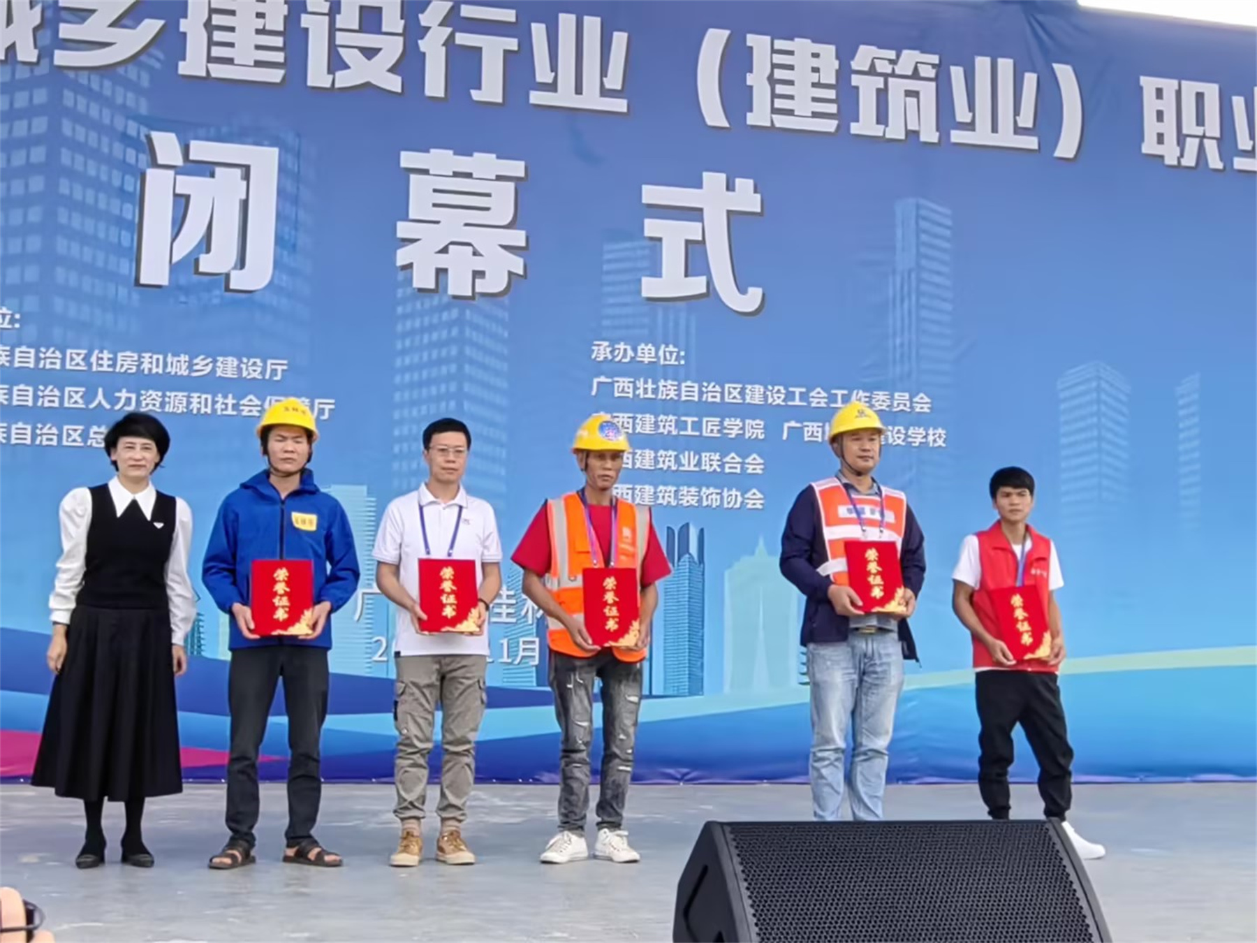 11月2日,本次職業(yè)技能競(jìng)賽開(kāi)幕式,自治區(qū)住房城鄉(xiāng)建設(shè)廳黨組成員、副廳長(zhǎng)黎旭標(biāo),自治區(qū)總工會(huì)黨組成員、副主席韋克軒,自治區(qū)住房城鄉(xiāng)建設(shè)廳人教處處長(zhǎng)傅波,自治區(qū)總工會(huì)產(chǎn)業(yè)工會(huì)工作部部長(zhǎng)劉文偉,廣西建設(shè)工會(huì)副主任(主持工作 )、二級(jí)調(diào)研員鄒麗萍,桂林市住房城鄉(xiāng)建設(shè)局黨組成員、副局長(zhǎng)蕭喜生,廣西城市建設(shè)學(xué)校黨委書(shū)記、校長(zhǎng)蔣以明,廣西建筑業(yè)聯(lián)合會(huì)會(huì)長(zhǎng)黃大友,廣西建筑裝飾協(xié)會(huì)會(huì)長(zhǎng)龐耀國(guó)等領(lǐng)導(dǎo)出席了開(kāi)幕式。