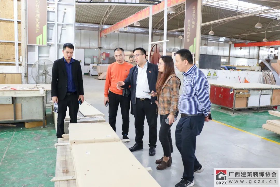 欽州市建筑裝飾行業(yè)協(xié)會(huì)葉丙干會(huì)長(zhǎng)一行到訪華輝,廣西建筑裝飾協(xié)會(huì)施工委副主任、華輝集團(tuán)副總裁覃祖榮,向葉丙干會(huì)長(zhǎng)一行介紹了華輝在別墅裝修方面的優(yōu)勢(shì)和特色,包括設(shè)計(jì)理念、施工流程以及選材標(biāo)準(zhǔn)等方面的內(nèi)容。參觀人員還來(lái)到華輝裝飾的自有工廠進(jìn)行了實(shí)地考察,了解了工廠的運(yùn)行狀況、裝配式生產(chǎn)流程、施工工藝以及質(zhì)量保障等方面的內(nèi)容。