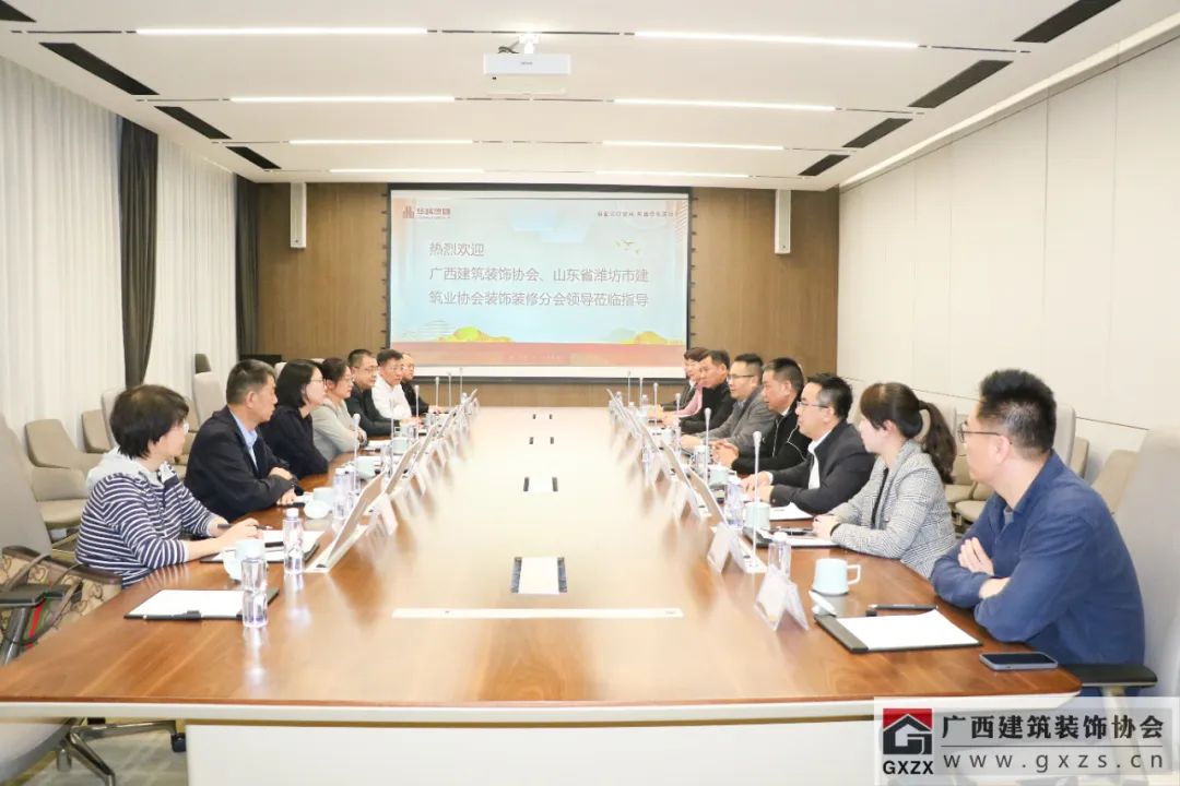 在與山東省濰坊市建筑業(yè)協(xié)會(huì)裝飾裝修分會(huì)一行的座談會(huì)上,廣西建筑裝飾協(xié)會(huì)副會(huì)長(zhǎng)、華輝裝飾董事長(zhǎng)楊景忠向?yàn)H坊市協(xié)會(huì)一行詳細(xì)介紹了華輝裝飾在企業(yè)管理、人才培養(yǎng)、創(chuàng)新機(jī)制方面的經(jīng)驗(yàn),雙方企業(yè)就裝配式裝修在兩地的發(fā)展情況和前景相互探討。隨后,華輝裝飾副總裁覃祖榮帶領(lǐng)參觀了華輝裝飾辦公大樓以及工廠,重點(diǎn)介紹了華輝裝飾在裝配式裝修工藝技術(shù)的發(fā)展應(yīng)用。