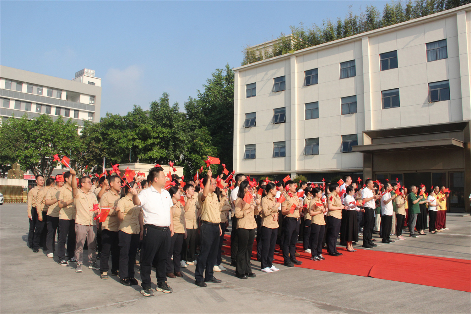 升旗儀式結(jié)束后,集團總裁楊彬發(fā)表了熱情洋溢的講話。他強調(diào)了愛國主義精神對于華輝發(fā)展的重要意義。他號召全體員工要牢記歷史使命,將愛國情懷轉(zhuǎn)化為實際工作的動力,為企業(yè)發(fā)展貢獻自己的力量,為實現(xiàn)中華民族偉大復興的中國夢而不懈奮斗。