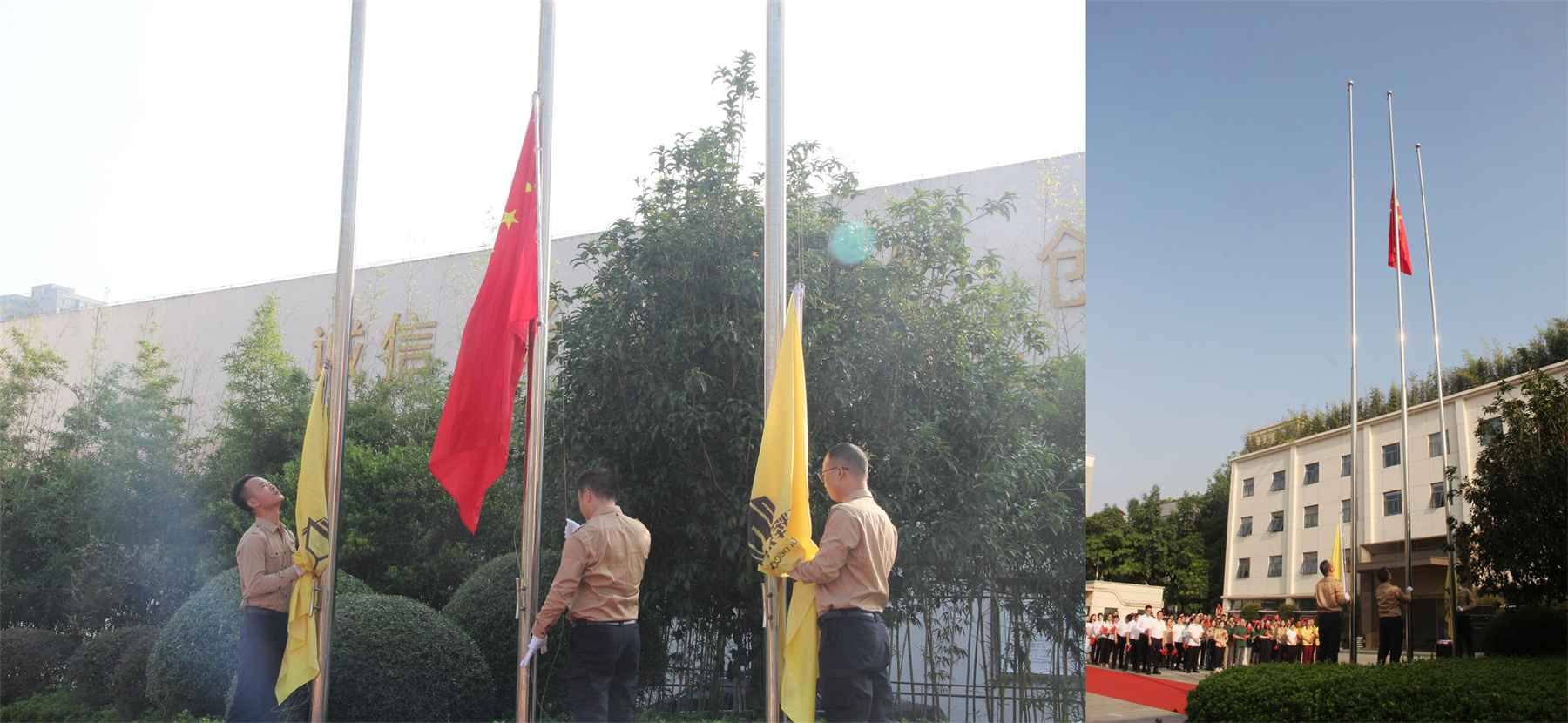 隨著《義勇軍進行曲》的激昂旋律響起,鮮艷的五星紅旗在華輝人的注目禮中冉冉升起,迎風飄揚。滿懷著對偉大祖國的熱愛與祝福,在場的每一個人都肅立致敬。