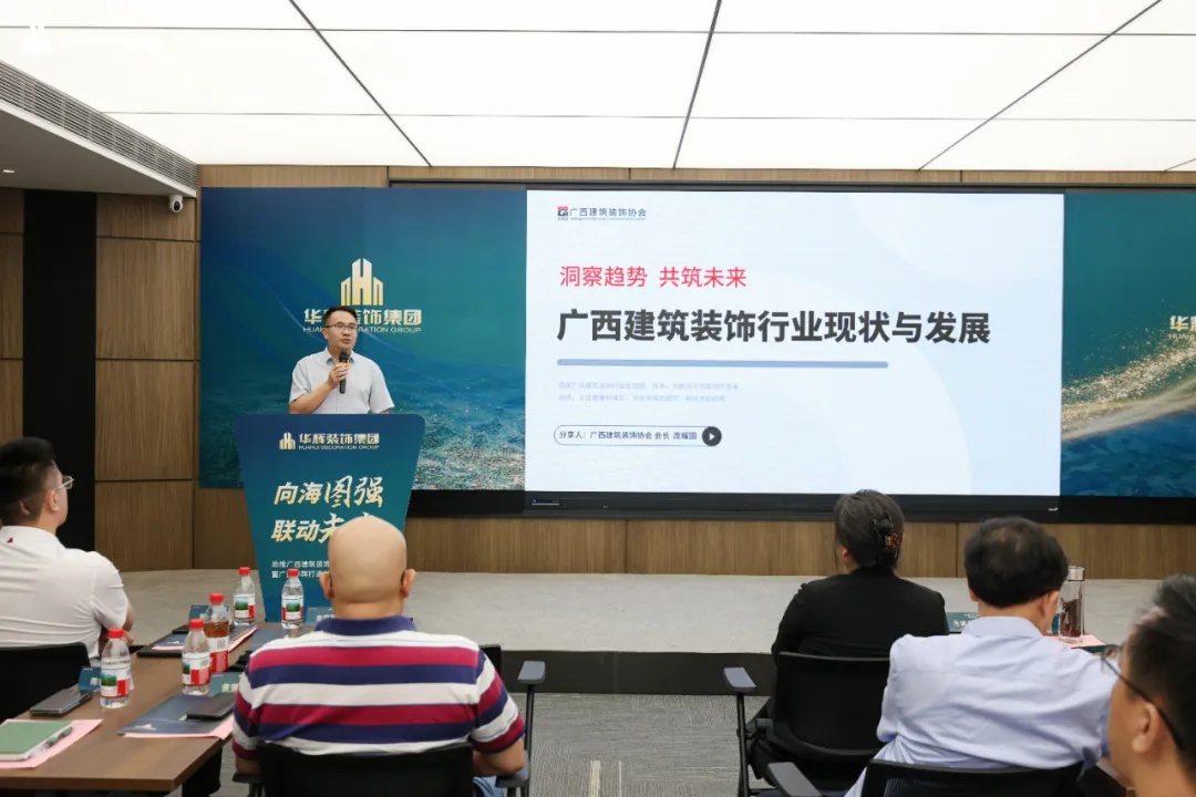 2025年6月6日,“向海圖強(qiáng) · 聯(lián)動(dòng)未來”——助推廣西建筑裝飾行業(yè)高質(zhì)量發(fā)展暨廣西華輝裝飾集團(tuán)有限公司打造共建共享合作平臺(tái)研討會(huì)圓滿落下帷幕。自治區(qū)商務(wù)廳對(duì)外經(jīng)濟(jì)合作處二級(jí)調(diào)研員張建英,廣西江蘇商會(huì)名譽(yù)會(huì)長(zhǎng)、創(chuàng)會(huì)會(huì)長(zhǎng)單桂林,廣西建筑裝飾協(xié)會(huì)會(huì)長(zhǎng)龐耀國(guó)等領(lǐng)導(dǎo)出席會(huì)議,來自政府相關(guān)部門、行業(yè)協(xié)會(huì)、企業(yè)代表等眾多嘉賓齊聚一堂,共同為廣西建筑裝飾行業(yè)的未來發(fā)展出謀劃策。此次研討會(huì)由廣西建筑裝飾協(xié)會(huì)指導(dǎo),廣西江蘇商會(huì)主辦,廣西華輝裝飾集團(tuán)有限公司承辦。