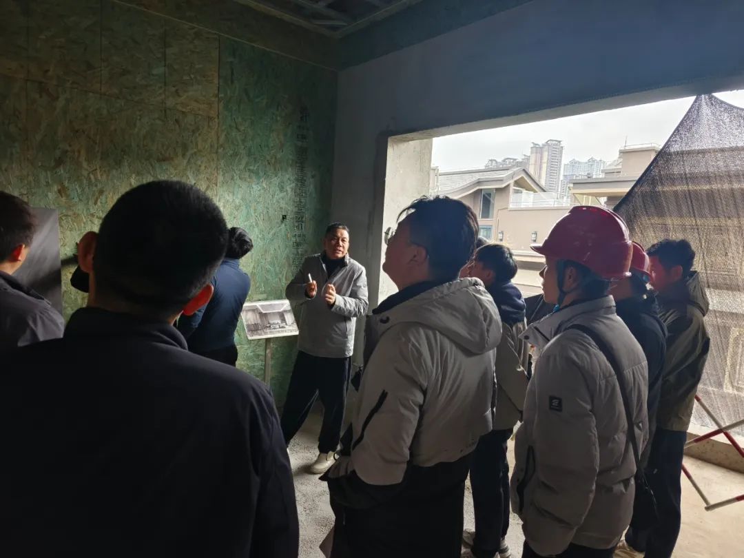 ▲集團董事長楊景忠?guī)ьI(lǐng)團隊巡視項目